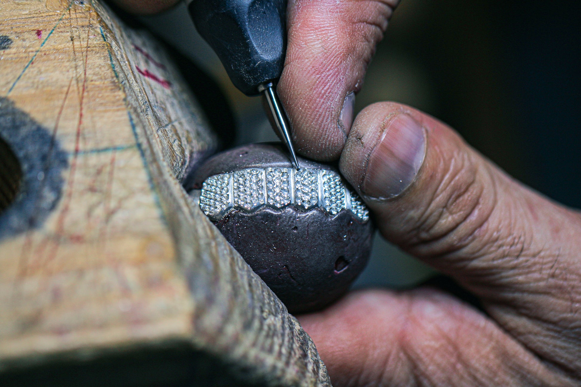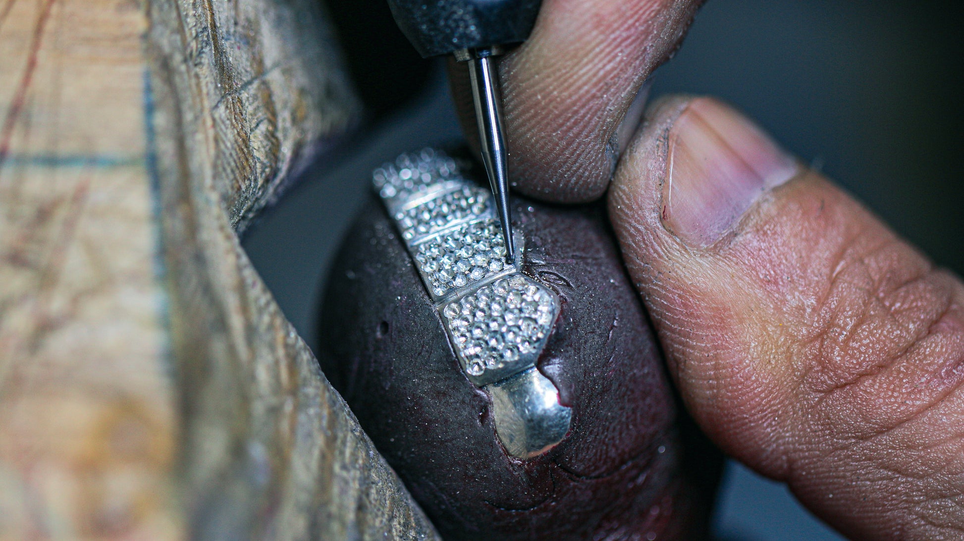 Every stone is hand-set in a flawless honeycomb pattern by our skilled setters, creating a fully flooded look.